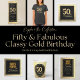 Um elegante botão de honra de 50 anos com ouro chico e letras negras e design de número.
