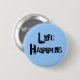 Botão de pino "A vida acontece". A cor de fundo pode ser personalizada.