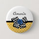Adicione uma vibração giratória ao seu estilo pessoal com este botão de padrão de bolinhas branco e amarelo giro com um arco chevron preto e branco de tendência e um rosa de fita azul-chic. Faça com que este retrato amarelo e azul encontre a design moderna personalizada adicionando o nome da sua adolescente. Imagem impressa plana, NÃO fita e arco de rosetas reais.
