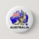 Austrália é o continente o menor; entre o South Pacific e o Oceano Índico. Um canguru é sobrepor no mapa enchido bandeira de Austrália.