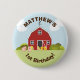 O Barnyard celebra o teu aniversário com o nosso bonito tema do Barnyard. Com um celeiro vermelho, feno, porcos e pintinhos. Tema perfeito para fazenda de aniversário ou festa temerária do animal de celeiro. Este design é ideal para todas as idades. Completamente personalizável. Veja o papel de coordenação e presentes.