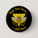 Abelha de mel com ícone de asas abertas sobre colmeia de abelhas e gotas de mel. Cor de fundo personalizada. Dois campos de texto em círculo.