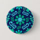 Bóton Redondo 5.08cm Blue Retro Style Floral and Sun Symbol Pattern