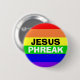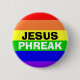 Botão de Jesus Phreak no fundo da bandeira do orgulho