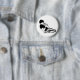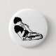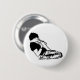 Um botão preto e branco que caracteriza um homem que ajoelha-se e que canta em um microfone.