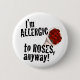 Botões anti-Dia de os namorados, produtos e equipamentos antidiurnos de atitude solteiro, com uma fotografia de uma dúzia de rosas vermelhas e um texto escondido que diz, sou alérgico a rosas, de qualquer forma! Solteiro amargurado, senhoras anti-valentino, para mulheres solteiros que não têm ninguém comprando rosas em Dia de os namorados!