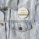 Uma brisa marrom ornamental contra fundo creme serve como o elemento gráfico principal desse botão elegante. Use como um favor de casamento, noivado, chá ou guardar a data. Personalizar com a função ou o nome da parte noiva. Cartões de correspondência, postagem e outros favores disponíveis. Consulte a minha loja para ver mais opções de cor.