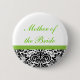 Um teste padrão preto e branco do papel de parede do damasco com acentos do verde limão destaca este pino. Dê-o a sua festa de casamento ao uso como um favor do casamento, do noivado, do chá ou da economia--data. Personalize com papel nupcial do partido ou nomeie. Disponível em cores alternativas com cartões de harmonização, porte postal e outros favores.