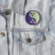 O logotipo Dudeism Yin-Yang/Bola de boliche em um botão.