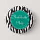 Esta característica adorável do botão da festa de solteira um fundo preto & branco do impressão da zebra. Na parte superior é uma forma esmeralda decorativa com uma beira branca. As palavras "festa de solteira" são indicadas sobre o botão em uma pia batismal denominada. Personalize as palavras com seus detalhes.