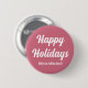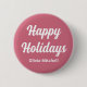 Botão cor-de-rosa suave/rosa de bagas sólido da nossa "Coleção de Cores de Natal Rosa de Tendy". Este elegante botão cor-de-rosa é a maneira perfeita de adicionar um toque de alegria festiva à sua roupa de férias. O texto "Feriados Felizes" é personalizável e o nome também pode ser personalizado.