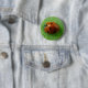 Este botão bonitinho mostra uma fotografia de perto de um pássaro 7 Spot britânico sentado numa folha. A foto foi tirada diretamente acima da joaninha usando macro fotografia, resultando em uma imagem tão detalhada que você pode ver todas as veias na folha em que a joaninha está sentada.
