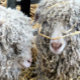 Um design fotográfico de duas cabras angorais muito bonitas com decoração de palha.