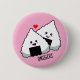 Insígnia de comida japonesa fofa de dois triângulos de arroz onigiri kawaii rindo. O texto é personalizável se você preferir alterá-lo para o seu nome ou slogan