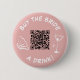 Este botão divertido é perfeito para uma despedida de solteira moderna! Com um fundo rosa elegante e uma mensagem ousada "Compre a Noiva Uma Bebida!", um copo de martini caprichoso e um código QR conveniente, este botão certamente será um sucesso com sua comitiva e convidados. É uma maneira divertida e fácil de coletar doações para o dia especial da noiva, adicionando um toque de emoção e risadas às festividades.