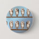 Linhas de corujas curiosas inclinando suas cabeças para olhar para a câmera