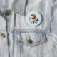 Botão com uma ilustração adorável. Um pequeno pônei marrom comendo margaridas felizes.
