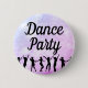 Aperte este botão de Dançarinas Silhouette Party para a sua jaqueta favorita. Apresenta um fundo azul e roxo de boque, acentuado com dançarinos de silhueta e a frase "Dance Party". Deixe este botão de estilo disco adicionar na moda bling.