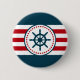 Design náutico com decoração das rodas de vela em forma redonda com estrelas sobre fundo listrado vermelho, azul e branco
