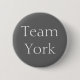 Uma crachá com texto branco lendo "Team York". A Casa de York manteve a rosa branca como seu emblema e foi uma das linhas dos Reis da Inglaterra na década de 1500. Eles lutaram nas guerras das Rosas contra a Casa rosa vermelha de Lancaster.