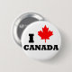 Eu amo o botão de Canadá! Caracterizando a folha de bordo canadense vermelha de A como o coração na frase, "eu amo Canadá"! Uma grande ideia do Natal e do presente de época natalícia para o canadense verdadeiro!
