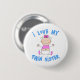Botão bonito com "Eu Amo Minha Irmã Gêmea" em texto azul e uma menina bonita de rosa.