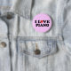 Botão cor-de-rosa bonito da música com slogan do piano do amor de I no estilo vermelho do coração. Grande botão para accompanists ou melómanos do piano.