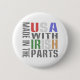 Leituras, em caracteres viscosos, FEITAS NOS EUA COM PARTES IRLANDESAS. Os EUA mostram em letras vermelhas, brancas e azuis. O irlandês aparece em verde, branco e laranja.
