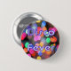 Botão redondo com uma imagem de luzes da discoteca coloridas do arco-íris e a menção "Febre do Disco" em letras claras e escuras e roxas. Consulte chaveiro de metal grande e redondo e chaveiro de acrílico de solteiro redondo. Veja toda a coleção de botões e pinos do Disco 70s em TOUCHES ESPECIAIS| Seção Favoritos para festas.