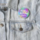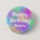 Botão Feliz Aniversário Colorido e personalizado com fundo de cor unicórnio arco-íris, brilho dourado confetti e escrevendo branco ousado. Você pode adicionar facilmente o nome de sua escolha e alterar a cor e a fonte do nome usando a opção personalizar!