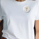 Enfeites de natal no Ouro Palm Tree Warm Holiday desejam um botão branco personalizado. Nosso botão de Natal apresenta uma palmeira ouro com ornamentos de ouro festivos junto aos seus "Feriados Quentes Quentes" ou outro cartões de natal além do seu nome na tipografia elegante da serifa. Todo texto pode ser facilmente revisado com seus próprios detalhes no modelo de personalização.