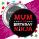 Esta Mãe de aniversário da design de Ninja é perfeita para o tema de festas de aniversário ninja para rapazes ou raparigas. Possui símbolo japonês para Ninjutsu com desenhos atirando estrelas... o aniversariante ou menina vai amar! Este design de aniversário de mãe ninja para a mãe do aniversariante é um perfeito design de festas para crianças que gostam de ninjas, karatê, taekwondo, judô ou outras artes marciais.