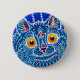 Botão com a pintura animal de Louis Wain A Cat in Gothic Style (1860-1939). Um gato azul psíquico olha amigavelmente com os olhos amarelos para o espectador. Um presente maravilhoso para amantes de gatos e arte inglesa.