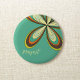 Bóton Redondo 5.08cm Groovy 60s 70s, Hippie Flower Turquoise Daisy Name