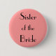 Botão personalizável de pino "Irmã da noiva". A cor, a forma, a fonte e o texto em segundo plano podem ser personalizados.