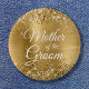 Um botão de vidro feminino para a mãe do noivo. Todo o texto elegante do estilo caligrafia moderno é personalizável. O plano de fundo apresenta uma folha de ouro falsa com brilho falso brilhante. Estes elementos digitais são impressão como uma foto.