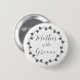 Botão redondo, de pin-back para a Mãe da Almoça, num evento de casamento que apresenta um design botânico de camada de cinza escura com escrita estilizada na mesma cor. Selecione o tamanho do botão.