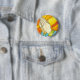Botão com uma imagem de vidro manchado com as mãos rezando.