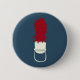 Este pino ou botão apresenta uma ilustração simples de um chapéu de banda marcial com penas no topo em creme ou marfim e vermelho escuro, colocado sobre um fundo azul marinho.