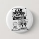 Crachá engraçado para um mecânico motor. Centro de Serviços Automóveis de uma empresa de reparação de automóveis, reparação de automóveis e mecânica de veículos. Ótima ilustração de desenho animado de um mecânico atrás da mesa pronto para receber o pagamento. Há bebidas alcoólicas em ótica sob um cartaz que diz "Absorventes de Choque".