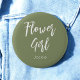 Bóton Redondo 5.08cm Menina de Flor Verde Sage Casamento Branco