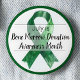 Apoie a Consciência da Dádiva Óssea Em Julho! Este botão redondo de 2,25" é uma forma significativa de reconhecer o Mês de Consciência da Dádiva Óssea em julho. No topo, "Julho é" é exibido em uma fonte forte e ousada, garantindo que a mensagem seja clara e impactante. Abaixo, "Mês de Consciência da Dádiva Óssea" é escrito elegantemente em um fluxo cursivo, simbolizando esperança, cura e o poder de salvar vidas através da doação. No centro, uma fita vibrante de conscientização verde se concentra, representando o apoio à doação de medula óssea e aos receptores de transplantes. Uma borda verde arrojada aperta o botão, dando-lhe uma design polida e atraente para os olhos. Vista orgulhosamente este botão na sua jaqueta, saco ou pátio para ajudar a espalhar a consciência, encorajar o registro de dadores e mostrar apoio para aqueles que precisam de um transplante de medula óssea. Uma maneira pequena, mas poderosa, de fazer um impacto que muda a vida! 💚 🩸