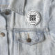 The button features a crisp white center framed by a bold black circular border and a delicate background of black and white floral line art. At the center is a large, scannable QR code that can be easily linked to a Venmo, CashApp, or PayPal account, allowing friends, family, and wedding guests to send a digital drink token directly to the groom.