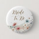 Um botão personalizado bem bonito com flores silvestres em aquarela rosa e azul empoeirado para despedida de solteira ou chá de noiva.