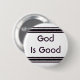 O deus é bom pino coloful cristão do botão das listras. Select personaliza para mudar a cor ou a pia batismal do fundo.