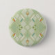 Um botão de pinback do padrão geométrico geométrico geométrico retrógrado do azulejo, projetado com um padrão de wallpaper verde-claro.