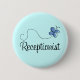 Este logotipo azul bonito da borboleta com slogan da ocupação do recepcionista vem em um grande presente do stuffer ou do trabalho da meia da carreira para o recepcionista do escritório.