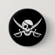 Emblema alegre Jaunty da bandeira do crânio de Roger e de pirata das cruzar-espadas. Estêncil-estilo, gráfico de b/w, em t-shirt & em presentes.