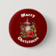 Um botão com uma imagem de Natal aconchegante, com uma lanterna vermelha cercada por um pinho e uma poinsettia e sagrada.
