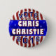 Voto para o botão de Chris Christie 2016 com fundo da bandeira da bandeira dos Estados Unidos, nas máscaras do vermelho, branco e do azul: Eleição 2016 presidencial: Republicano: botões da campanha para republicanos: GOP: política: político: conservador: Presidente: Os Estados Unidos da América: candidatos